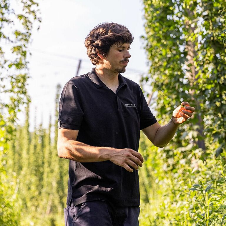 Lukas Locher, een vierde generatie hopteler, begon zijn transformatieve reis in 2020 en maakte de spannende maar uitdagende overstap naar biologische landbouw en biologische gewasbescherming. Voor deze overgang moest Lukas traditionele benaderingen in twijfel trekken, nieuwe technieken leren en talloze tests uitvoeren, wat de dynamische aard van het omarmen van verandering in het agrarische landschap benadrukt.