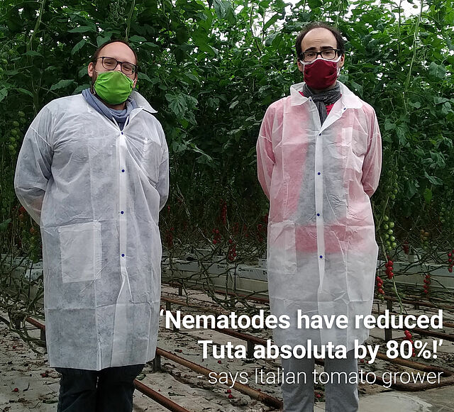 Dit is het eerste jaar dat we Steinernema feltiae hebben toegepast en na de eerste cyclus van drie behandelingen met nematoden zagen we een vermindering van Tuta in het gewas van meer dan 80%. De grote plaag die aanwezig was, was gereduceerd en onder controle, en de toepassing heeft sterk bijgedragen aan de conditie van de planten," zegt Zoboli die werkt bij Società Agricola Gandini Antonio in Guidizzolo, Noord-Italië.