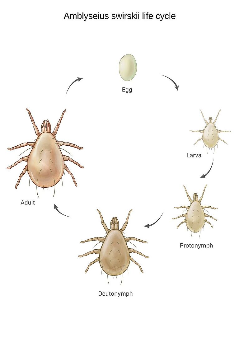 Veerkrachtige plaagbestrijding: Roofmijten kunnen een populatie opbouwen in het gewas en plagen voor een lange periode bestrijden.