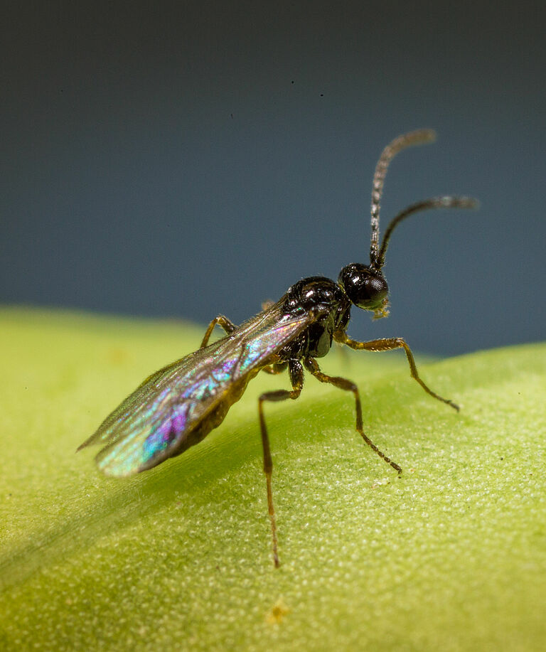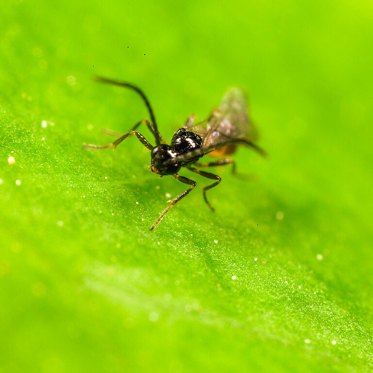 De sluipwesp Aphidius matricariae is verkrijgbaar in een flesje (Aphipar-M).