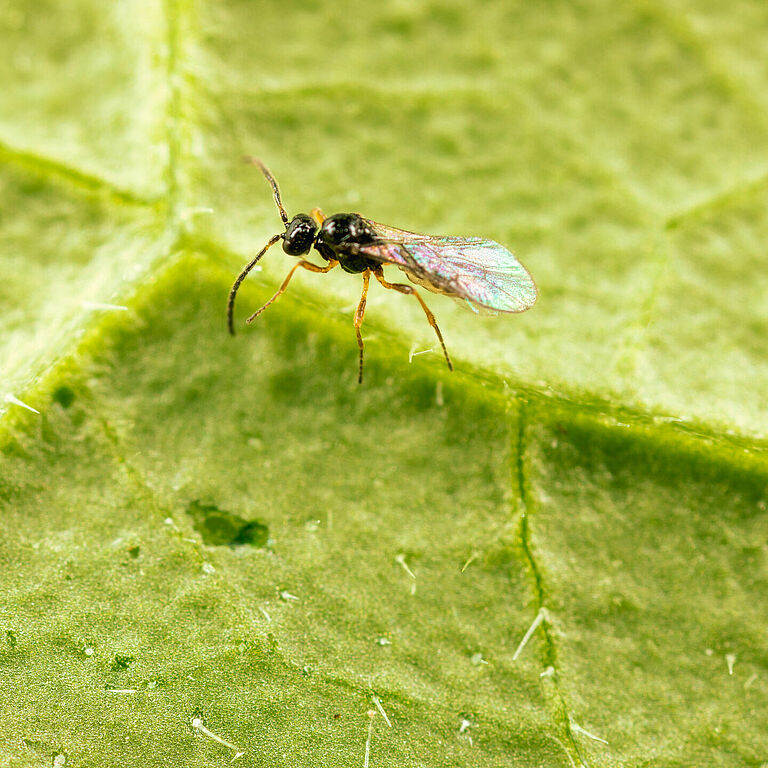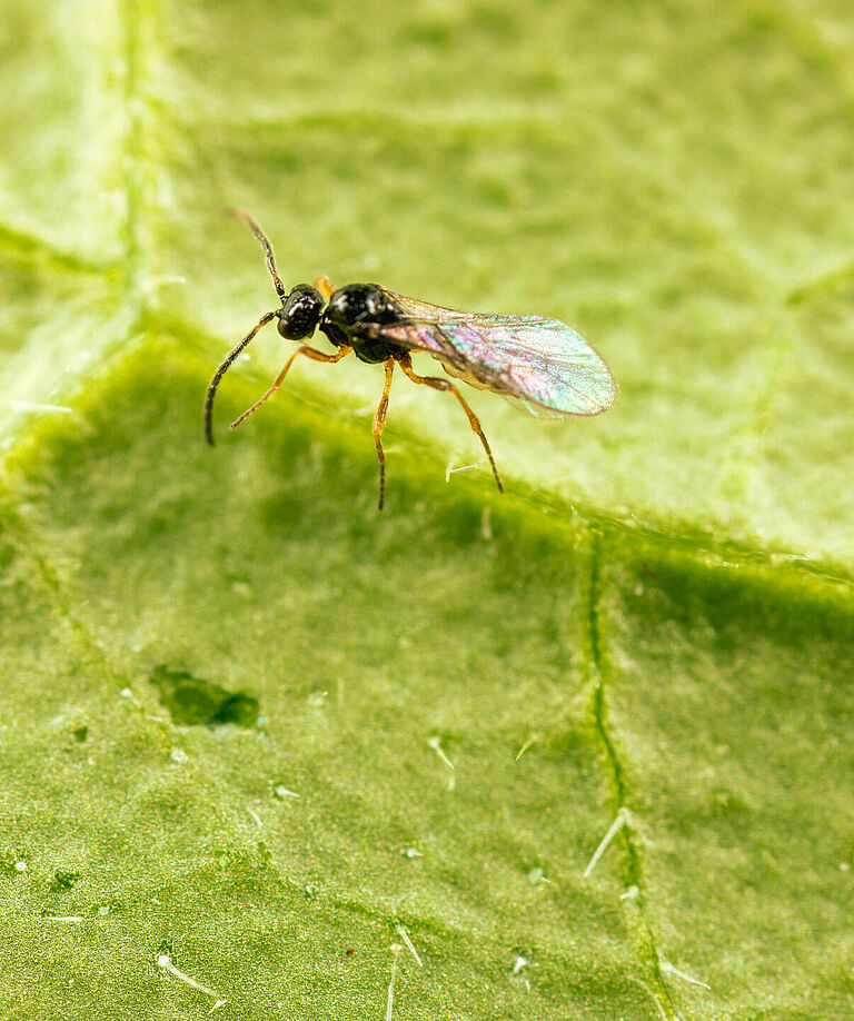 De sluipwesp Ephedrus cerasicola is verkrijgbaar in een flesje (Aphiscout).