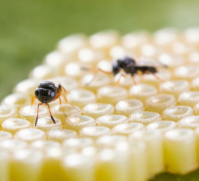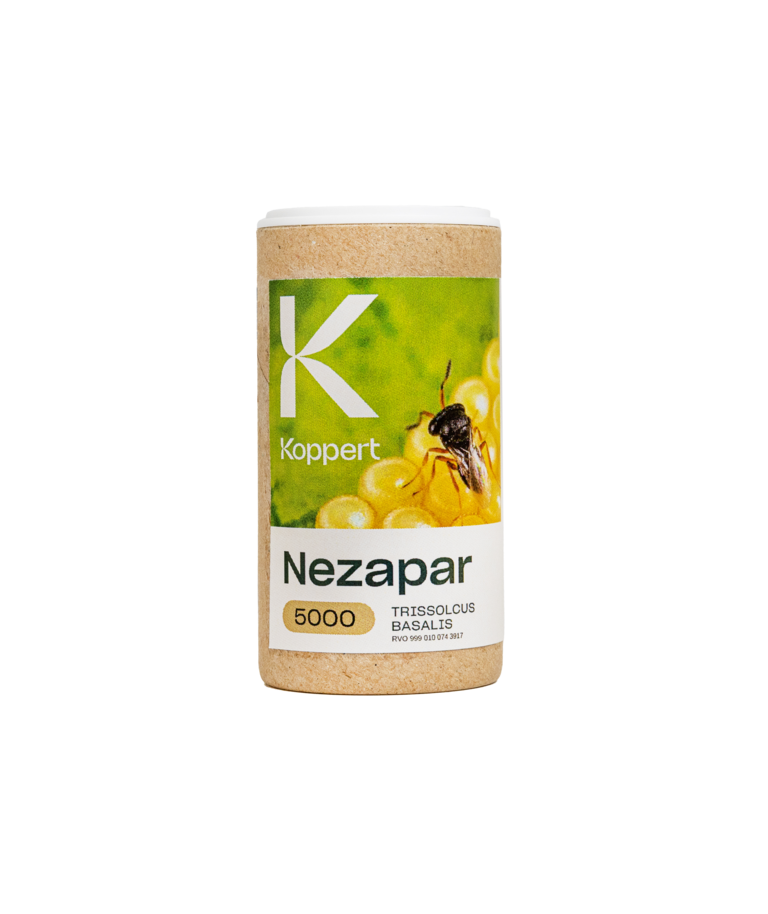 Het vermogen van sluipwespen om te parasiteren en zo de ontwikkeling van Nezara te beïnvloeden, wordt al enige tijd in onderzoekspapers beschreven. Koppert is de eerste die erin is geslaagd de kweek van Trissolcus basalis op te schalen tot levensvatbare commerciële hoeveelheden, waardoor de natuurlijke vijand op elk relevant moment kan worden geïntroduceerd.