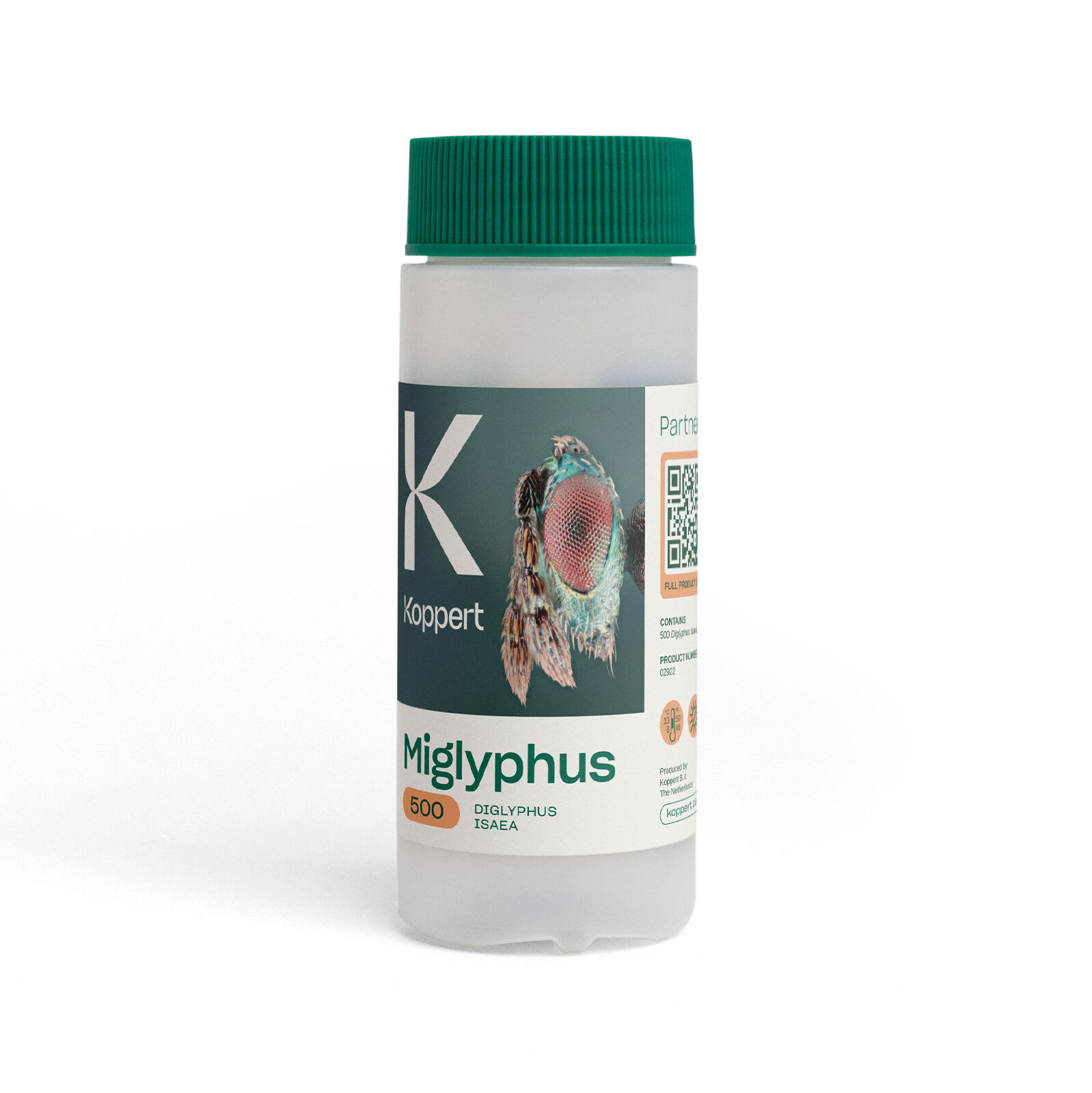 De dosering van Miglyphus hangt af van het klimaat, het gewas en de mineervliegdichtheid en moet steeds aan de specifieke situatie worden aangepast. Begin met de introductie zodra de eerste mijnen in het gewas worden waargenomen. De introductiedoseringen variëren gewoonlijk tussen 0,25-3 per m2/uitzetting. Het uitzetten dient ten minste 3 keer met een tussenperiode van een week te worden herhaald of tot de plaag is bestreden. Bij lage temperaturen (