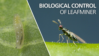 De aanwezigheid van Diglyphus isaea in het gewas is te herkennen aan korte mijnen, waarin dode mineervlieglarven zitten. Oudere larven en poppen zijn door het blad heen te zien.