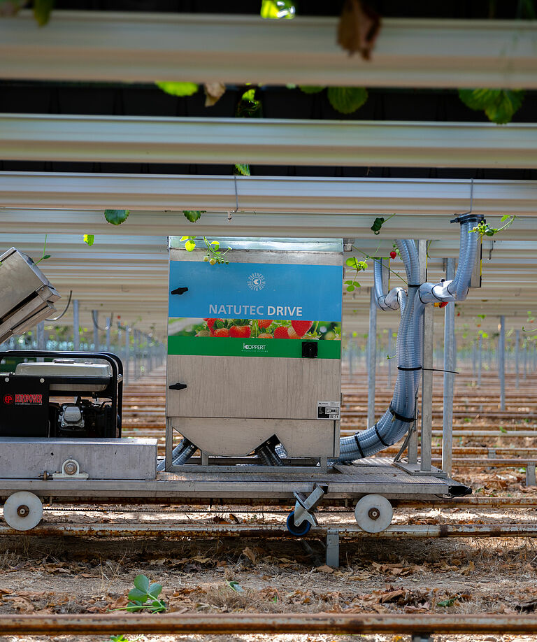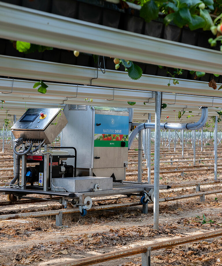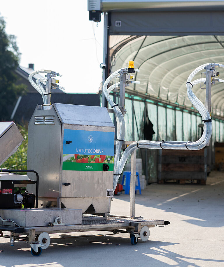 Gebruik Natutec Drive om Koppert-producten gelijkmatig over het gewas aan te brengen voor de meest effectieve plaagbestrijding. Het product is een constructie met een gepatenteerd afgiftesysteem aan de binnenkant om materiaal in een luchtstroom te verspreiden en via buizen op gewassen te verspreiden. De Natutec Drive is toepasbaar in elke situatie en op basis van de specificaties van de kas. De Natutec Drive-module kan worden gebruikt als een voertuig op maat of op bestaande landbouwapparatuur, ongeacht het teeltsysteem.
