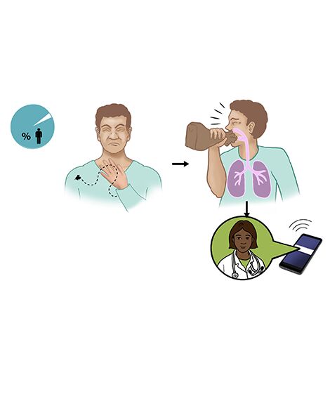 Graad 3 - graad 1 en/of 2 verschijnselen, plus ademhalingsproblemen en/of gevoel van stikken