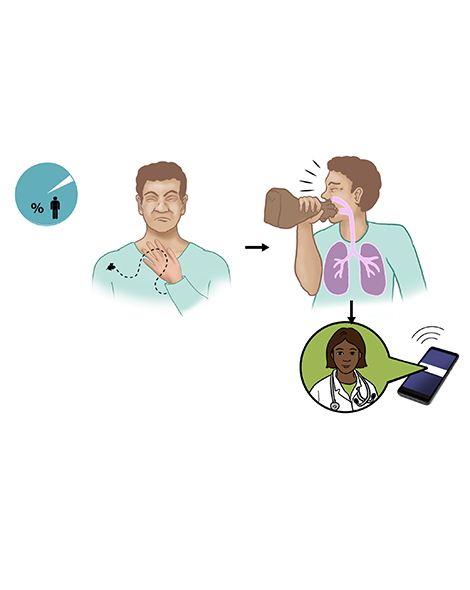 Graad 3 - graad 1 en/of 2 verschijnselen, plus ademhalingsproblemen en/of gevoel van stikken