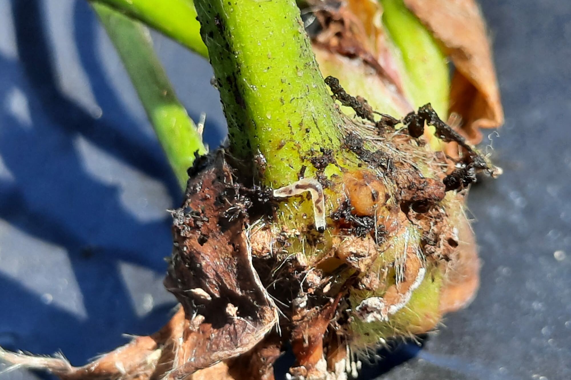 Sciara-larven, ook wel varenrouwmuglarven genoemd, vormen een serieus probleem op het trayveld. De varenrouwmuglarven vreten wortels aan. Dez wonden die daardoor ontstaan vormen invalspoorten voor ziektes zoals Phytophthora spp, Pythium spp en Pestalotiopsis. Deze schadelijke schimmels kunnen dan weer later in de teelt voor uitval op het trayveld en in de teelt zorgen.
