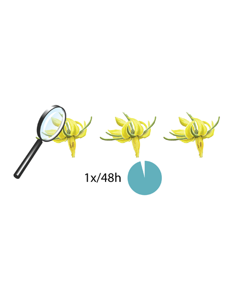 De bloem moet bestoven zijn voordat deze sluit. Afhankelijk van de omstandigheden is een bloem 1 tot 3 dagen open. Verzamel voor de controle van de bestuiving op verschillende plekken ongeveer 20 gesloten bloemen. Alle gesloten bloemen moeten beetmerken vertonen. De gesloten bloemen geven het exacte beeld. Bloemen die langer dan 1 dag open zijn, hebben tussen de 1 en 5 beetmerk