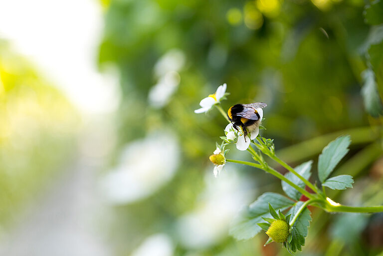 Hommels zijn goede bestuivers van aardbeien. Dit komt omdat ze in staat zijn veel stuifmeel te verplaatsen. Ze zijn van ’s morgens vroeg tot ’s avonds laat actief en vliegen ook bij zwaar bewolkt weer. De Natupol hommels bevorderen de vruchtzetting wat voor een hogere opbrengst zorgt. Het gemiddeld gewicht van de vrucht licht hoger, het aantal misvormde vruchten neemt af en de houdbaarheid van de vruchten verlengt. Conclusie: Bij aardbeien die door hommels zijn bestoven, krijgen de vruchten de beste start! Natupol hommels zijn dan ook een standaardproduct geworden in de teelt van aardbei voor zowel teelten in serres als in plastic tunnels. Ook in openlucht teelten zijn hommels perfect te gebruiken.