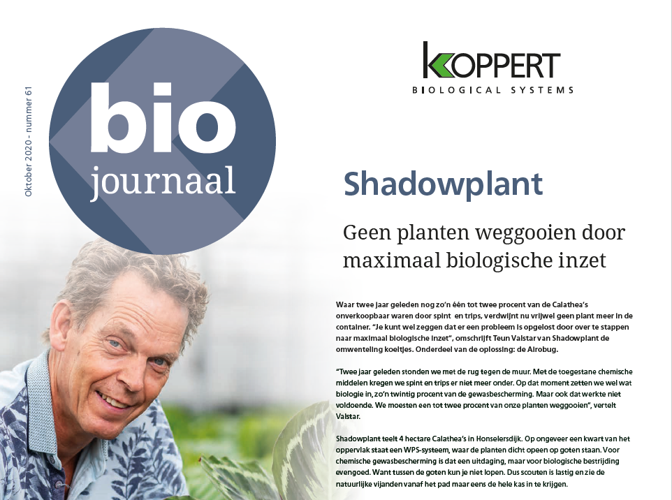 Ontvangt u het Biojournaal niet, maar wilt u dat wel ontvangen? Stuur dan een email met uw complete adresgegevens naar communicatie@koppert.nl.
