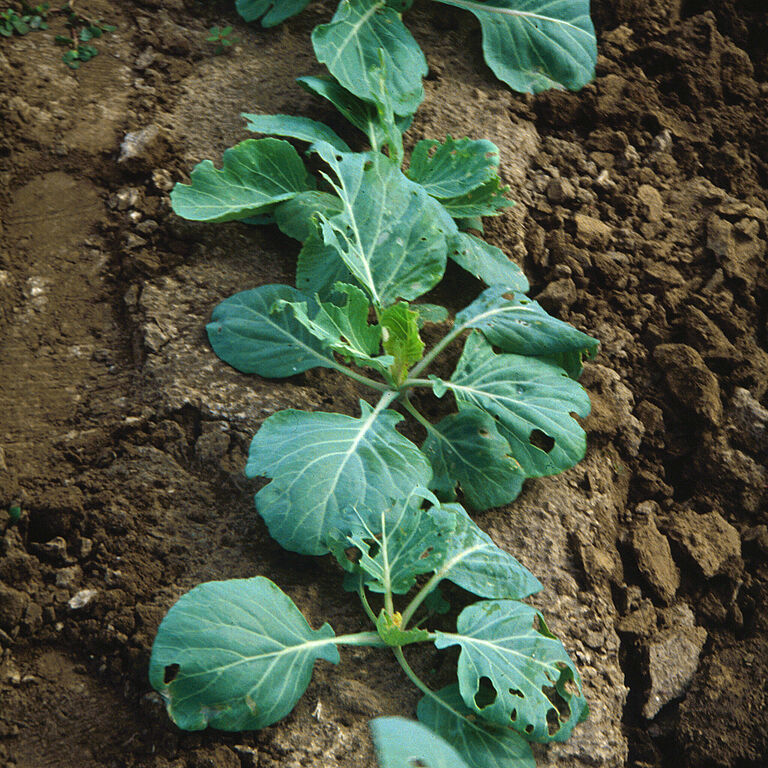 De rupsen voeden zich met name met de bladeren, waarin ze onregelmatig gevormde gaten vreten. Rupsen uit de eerste drie stadia maken kleine gaten, en rupsen uit latere stadia voeden zich met het weefsel tussen de nerven, zodat er bladskeletten ontstaan. Ze zijn zeer vraatzuchtig en verorberen dagelijks tot drie keer hun eigen lichaamsgewicht. De planten kunnen veel blad kwijtraken en een groeiachterstand krijgen.