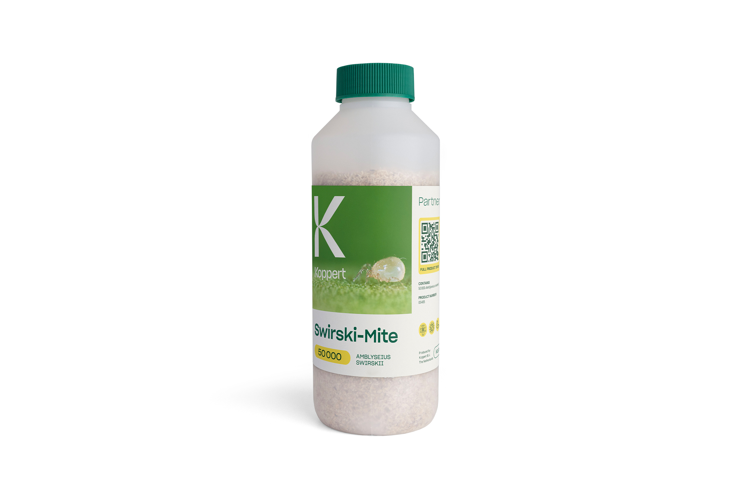 De dosering van Swirski-Mite hangt af van het klimaat, het gewas en de plaagdruk en moet steeds aan de specifieke situatie worden aangepast. Begin met de introductie zodra de eerste plaaginsecten in het gewas worden waargenomen. De introductiedoseringen variëren gewoonlijk tussen 25-300 per m2/uitzetting. Het uitzetten dient indien nodig te worden herhaald. Raadpleeg een consultant van Koppert of van een erkende distributeur van Koppert-producten voor advies over de beste strategie voor uw situatie.