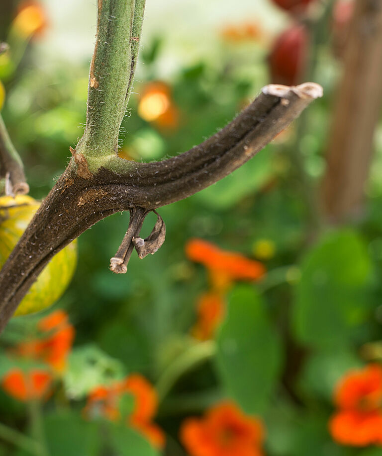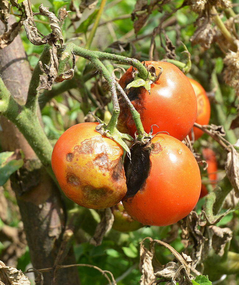 Phytophthora-soorten zijn zeer destructieve organismen die tot de Oömyceten behoren en daarom strikt genomen geen schimmels zijn. Ze gedijen bij bodemtemperaturen tussen 15 en 23°C, en bij een hoger bodemvochtgehalte dan optimaal voor de gewasgroei.