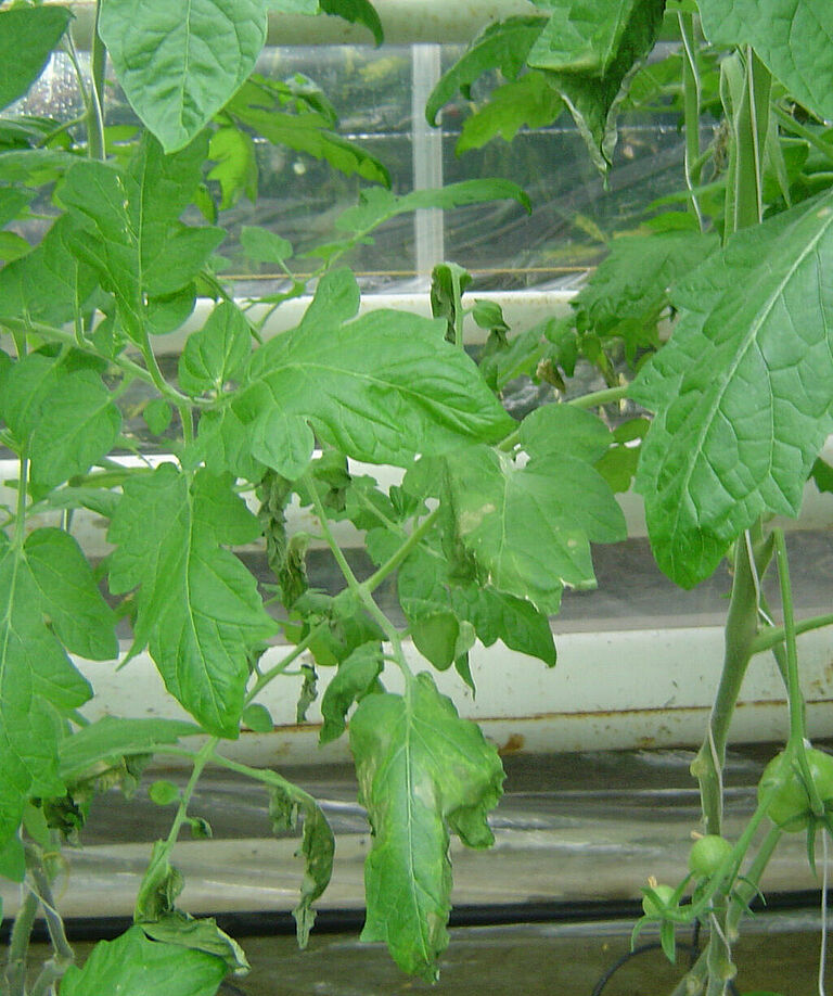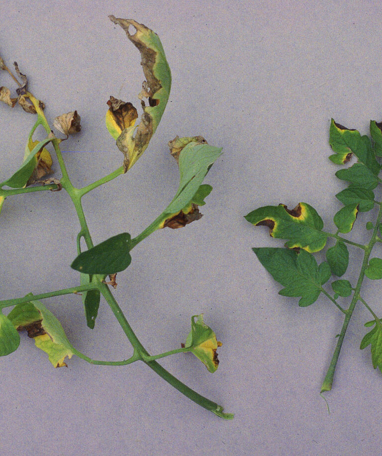 Bij aardappelen komt de ziekte meestal pas in de tweede helft van het seizoen voor. Eerst verwelken de onderste bladeren, wat zich vervolgens uitbreidt naar hoger gelegen bladeren. Wanneer de stengel van een met Clavibacter geïnfecteerde aardappelplant net boven de grond wordt doorgesneden, is er witachtig slijm met bacteriën te zien. Verder is de ziekte moeilijk te onderscheiden van verwelking door andere ziekteverwekkers.
